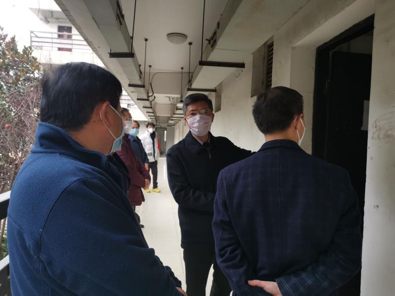 图三:谭文劲一行在学生公寓检查指导防疫工作