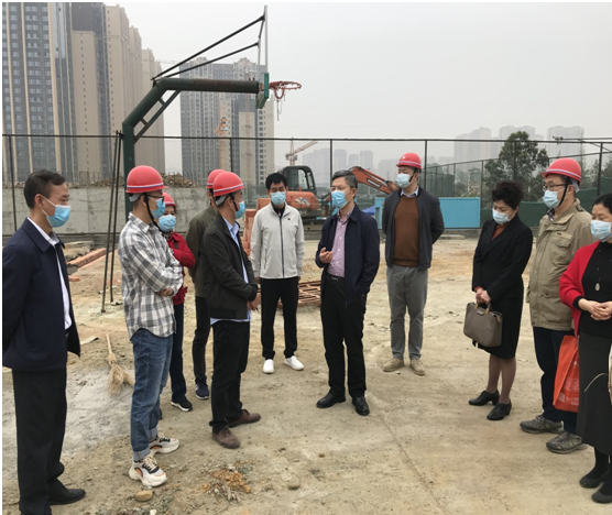 图一:谭文劲一行检查运动场改造工程