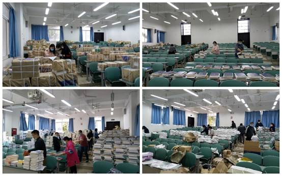 本次邮寄的教材包含了公共基础课和专业课,生均教材种类约7本,涉及西河、机投两个校区两个年级6000多名学生,种类多、数量大。同时由于分层教学等原因,学生书单存在个性化差异,教材邮寄组织复杂,既要保证邮寄效率,更要保证邮寄准确率。在完成前期地址收集核对工作后,教务处及各二级学院从4月21日起加班加点完成教材归类、整理、核对、打包等工作,随同教材寄出的还有《致全体学生及家长的一封信》。