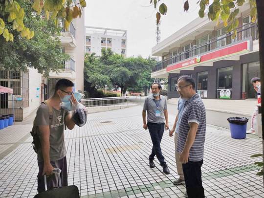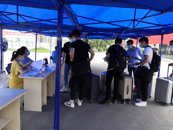 尽管已经连续奋战了两个星期,为保证学生顺利返校,各职能部门和二级学院教职工坚守岗位,尽职履责,在校门口、接待点、公寓入口,按照返校流程,认真、热情地接待每一位返校的学生,对他们进行身份核验、体温测量、行李消毒,并发放一次性口罩、卫生餐盒等物品,指引他们依次进住公寓,各环节分工明确,顺畅有序,让返校学生感受到了学院周到的服务和细致的关怀。学院领导也相继到接待点检查学生返校工作,详细了解学生返校、各项安保措施的落实等情况,询问同学们的返校过程和假期学习生活情况,叮嘱他们要养成良好的卫生习惯,提高防疫意识,欢迎同学们回家。