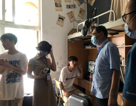 图六:学院领导亲切询问返校学生情况