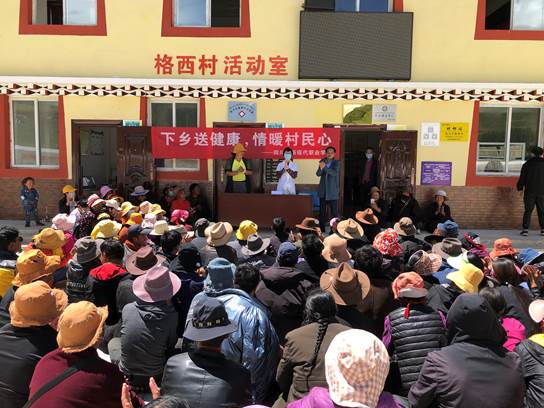 座谈结束后,学院党委副书记解登高带领学工部学生处党支部为格西村村民开展卫生健康培训。护理学院副院长陈蒂丝从新冠肺炎对大家的影响开始,通过耐心讲解和现场演示,为当地老百姓进行了新冠肺炎预防、日常卫生知识、结核病预防等内容的培训。现场学习气氛浓厚,反响热烈。