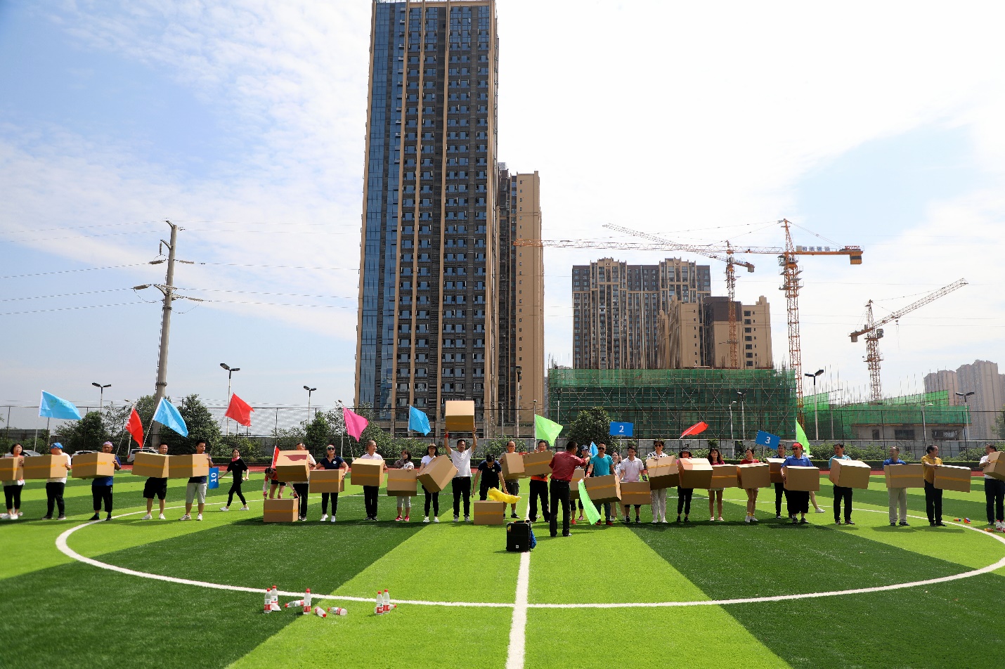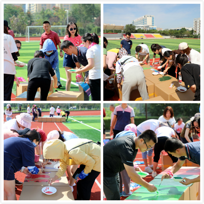 接下来是整个团建活动的核心项目“同筑长城 共创未来”,需要全体队员协作完成,是一场名副其实的团队攻坚战,大家摩拳擦掌,信心满满。这项目看似简单,实则不易,需要全体教职工按小组分板块绘制一幅长18米宽2米带有华新元素的长城画卷并最终将其搭建完成。这个项目要求每组队员分工合作、用心绘制、合力建塔、无缝衔接,考验团队配合和计划、执行力。活动中大家一边完成任务,一边畅聊工作及生活中的点滴趣事,整个活动洋溢着欢声笑语,充满了青春活力。