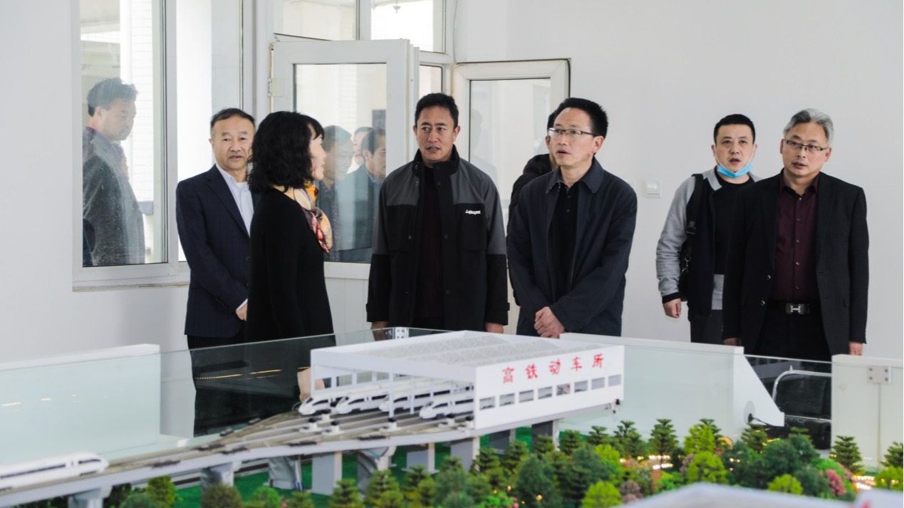 图六 蒲永峰一行参观建筑与交通学院实训室