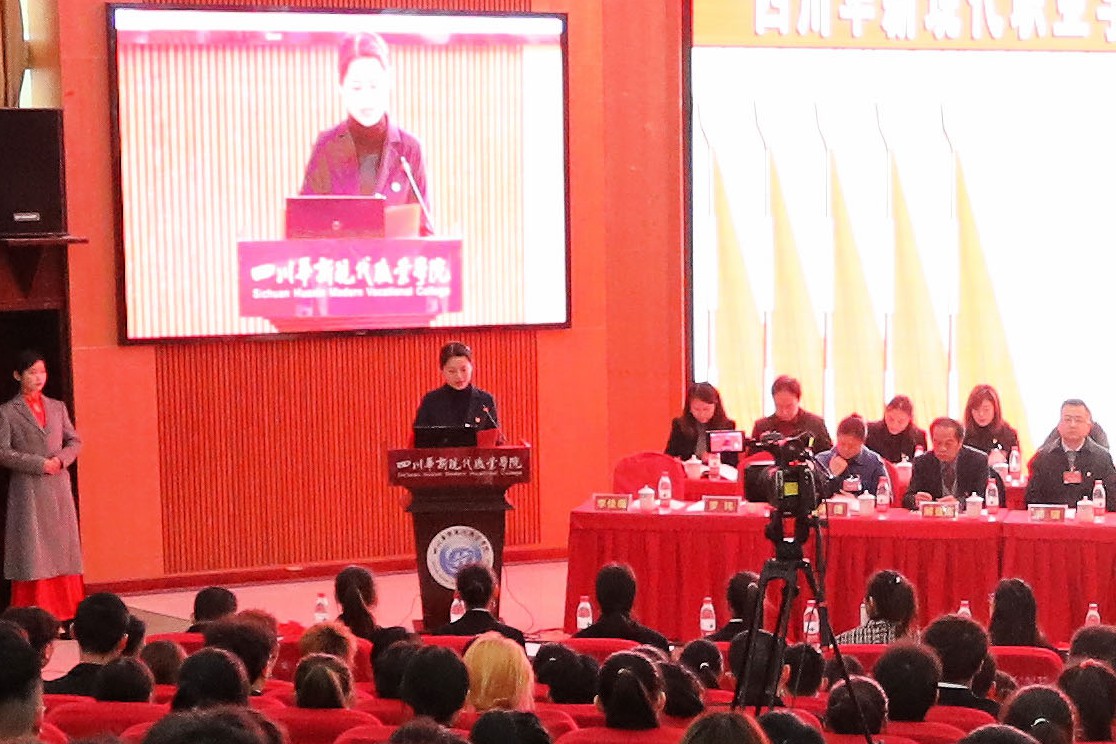 多年来,四川华新现代职业学院的共青团工作得到了上级团组织的有力指导和大力支持。共青团成都市委副书记郭骥代表共青团成都市委向大会的召开表示热烈的祝贺!并向全院广大团员和青年学生提三点希望和要求:一要切实提高政治站位,不断增强团的政治引领力。要引导青年学生牢固树立新思想,鼓励青年学生奋发展现新作为。二要竭诚服务青年成才,不断提升团的群众组织力。要突出青年学生主体地位,服务青年学生成长成才。三要深化推进自身改革,不断激发团的创新发展力。要以改革提升组织活力,以改革锤炼团学干部。