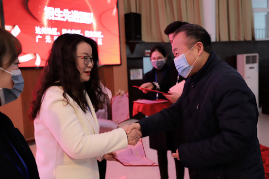 随后,举行颁奖仪式。李建川宣读了表彰文件,对学院2020年招生先进集体、招生先进团队、报到率先进集体、招生业绩标兵、招生进步标兵、招生行动标兵、招生宣传标兵、招生业务先进个人进行了表彰。谭文劲及华新学院各位领导为受到表彰的先进集体和个人颁奖。