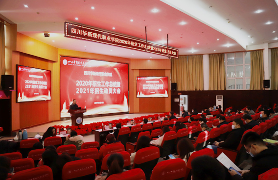 2021年1月12日上午,四川华新现代职业学院在学术报告厅召开2020年招生工作总结暨2021年招生动员大会,全面总结2020年招生工作,安排部署2021年招生工作,激励全院教职员工以更加昂扬的斗志和更加饱满的激情投入到招生工作中。