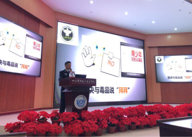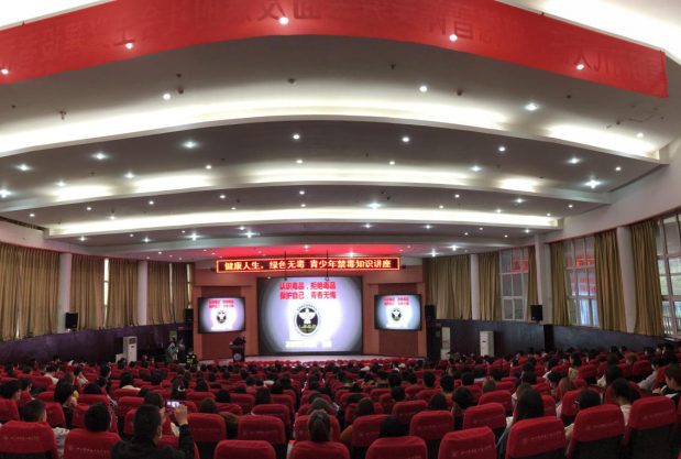 3月24日下午,华新学院特邀龙泉驿区禁毒办张超副主任及禁毒站工作人员,在华新学院西河校区举办了以“健康人生,绿色无毒”为主题的禁毒知识讲座,进一步加强校园禁毒预防宣传教育力度,有效提高学生识毒、防毒、拒毒意识和自觉抵制毒品侵袭的能力。各二级学院学生代表约350人参加讲座。讲座由保卫处和学生处主办。