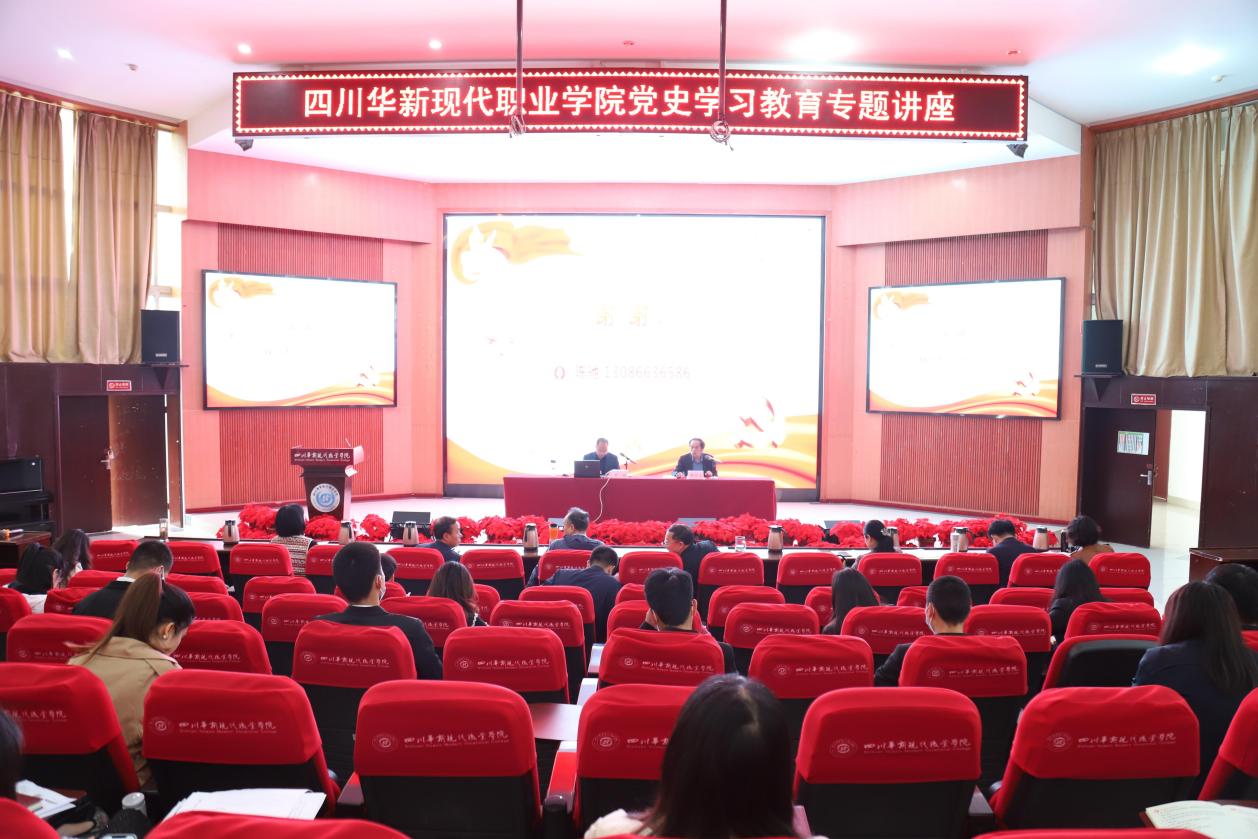 4月21日,华新学院在西河校区举办党史学习教育专题讲座,深入推进党史学习教育入心践行。四川开放大学党委副书记、华新学院党委书记李建川,四川开放大学副校长、华新学院党委副书记、院长杨波,华新学院副院长刘斌、涂捷、周勇、谭征,工会主席、纪委书记邓忠参加,华新学院党委副书记解登高主持讲座。