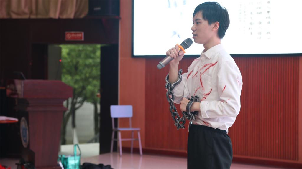 紧接着4号、5号、7号和9号选手慷慨激昂、气愤填膺,一股面对敌人无惧无畏的浩然正气瞬间涌上心头。“带镣长街行,志气愈轩昂”这就是我们革命者无私高尚的凛然情怀。觉醒吧!新时代的少年!