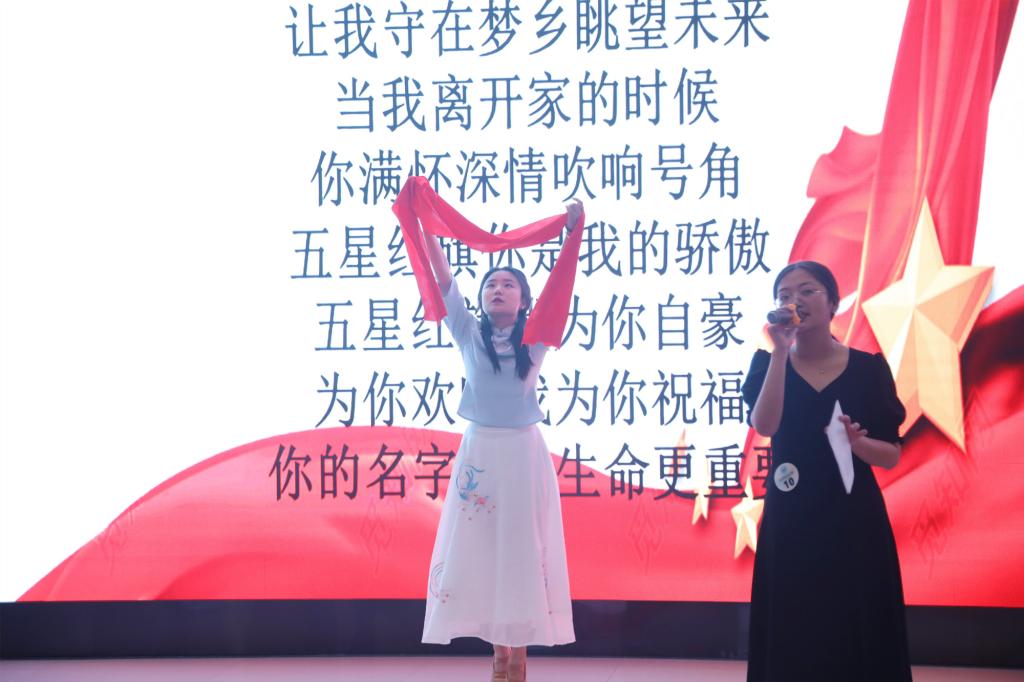 聆听1号选手温婉深情的朗诵,我们在横撇竖捺的方块字里,在历史的浩瀚典籍中,沿着甲骨文沧桑的纹理,感悟生生不息的华夏文明,品读众志成城、辉煌灿烂的伟大祖国。