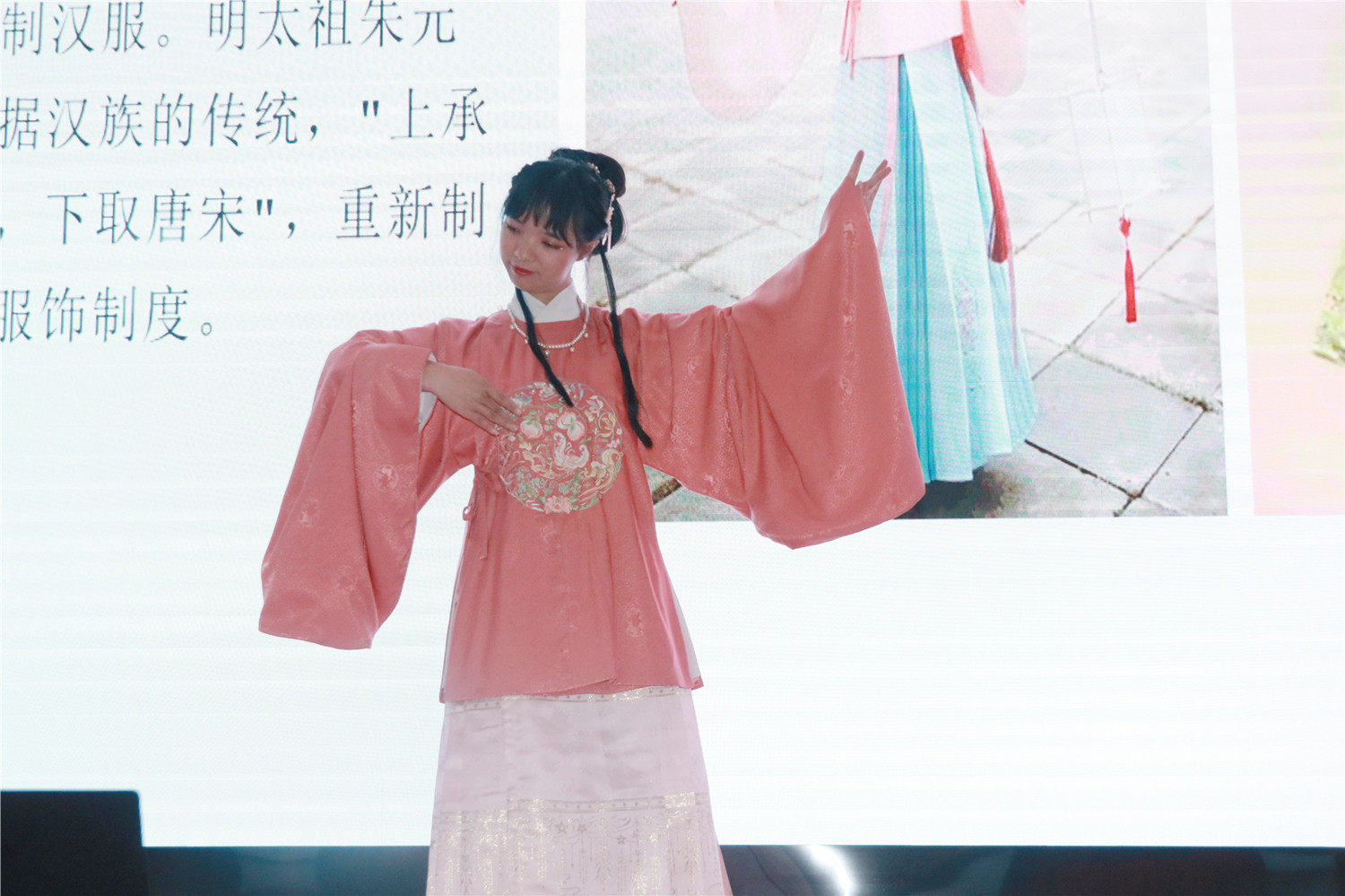汉服文化社团的同学们带来精彩的传统服饰展演,震撼全场,赢得了观赛同学和评审团老师们高度赞誉。