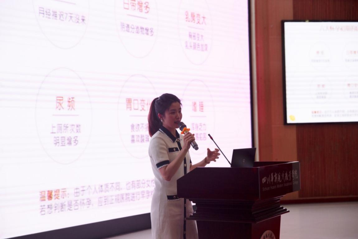 讲座伊始,阳亚群老师以图文并茂的方式,从男女两性生殖系统构造开始,向同学们详细讲解了性生理知识,包括怀孕初期的症状、早孕检测方式等,并贴心的为大家推荐书目《亲密关系》。她对同学们寄语,不以好奇开始,不以发生烦恼,美好与风险并存,保护自己,对自己和他人负责。