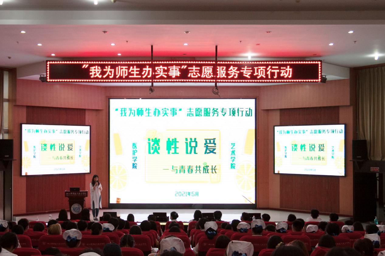 医护学院和艺术学院师生,通过“谈性说爱——与青春共成长”主题讲座,激发学生树立正确性观念,学会保护自身生理健康,正确对待两性问题,促进学生们身心健康发展,以青春奋斗姿态助力健康中国的建设。