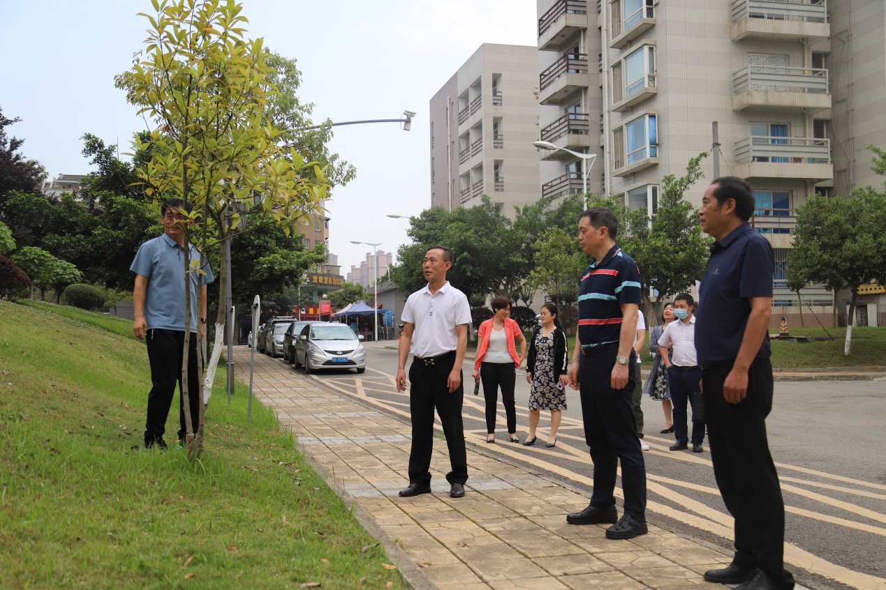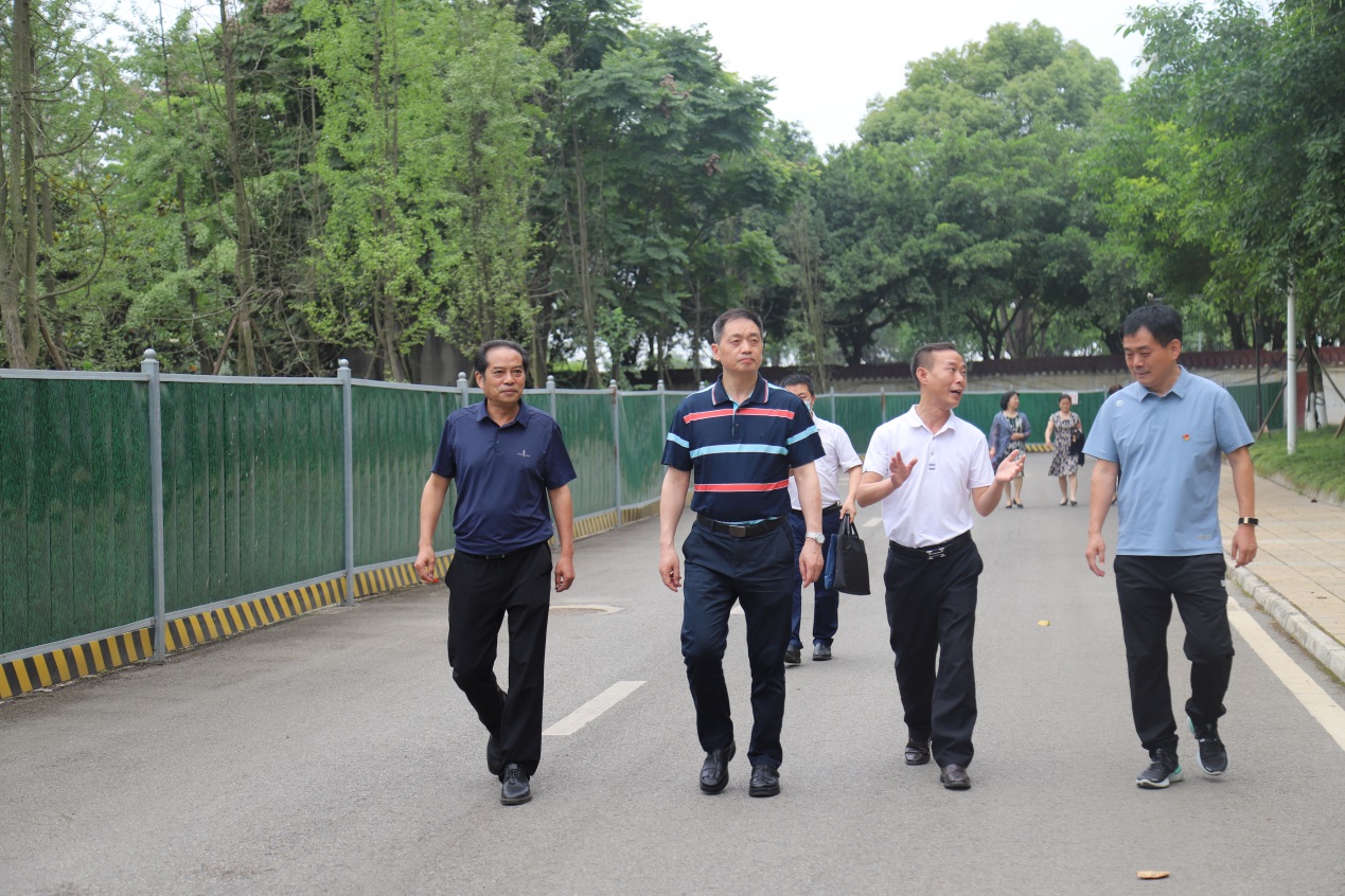 杨俊辉一行先后来到学院绿地园林区域、知行楼、成洛大道校门施工区域和运动场进行实地走访。在绿地园林区域,杨俊辉认真考察了学院绿地的基本情况,针对改造设计方案,对项目规划提出了指导意见。