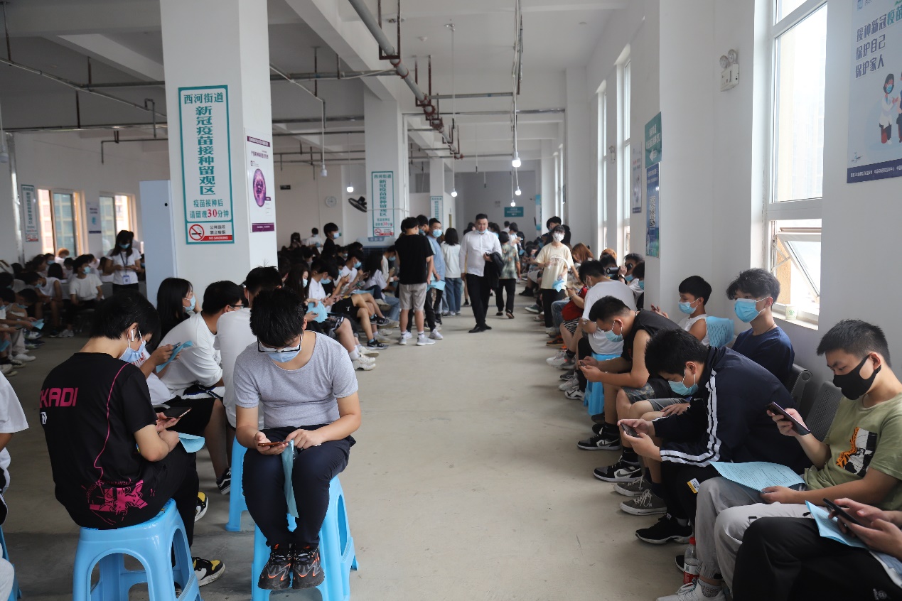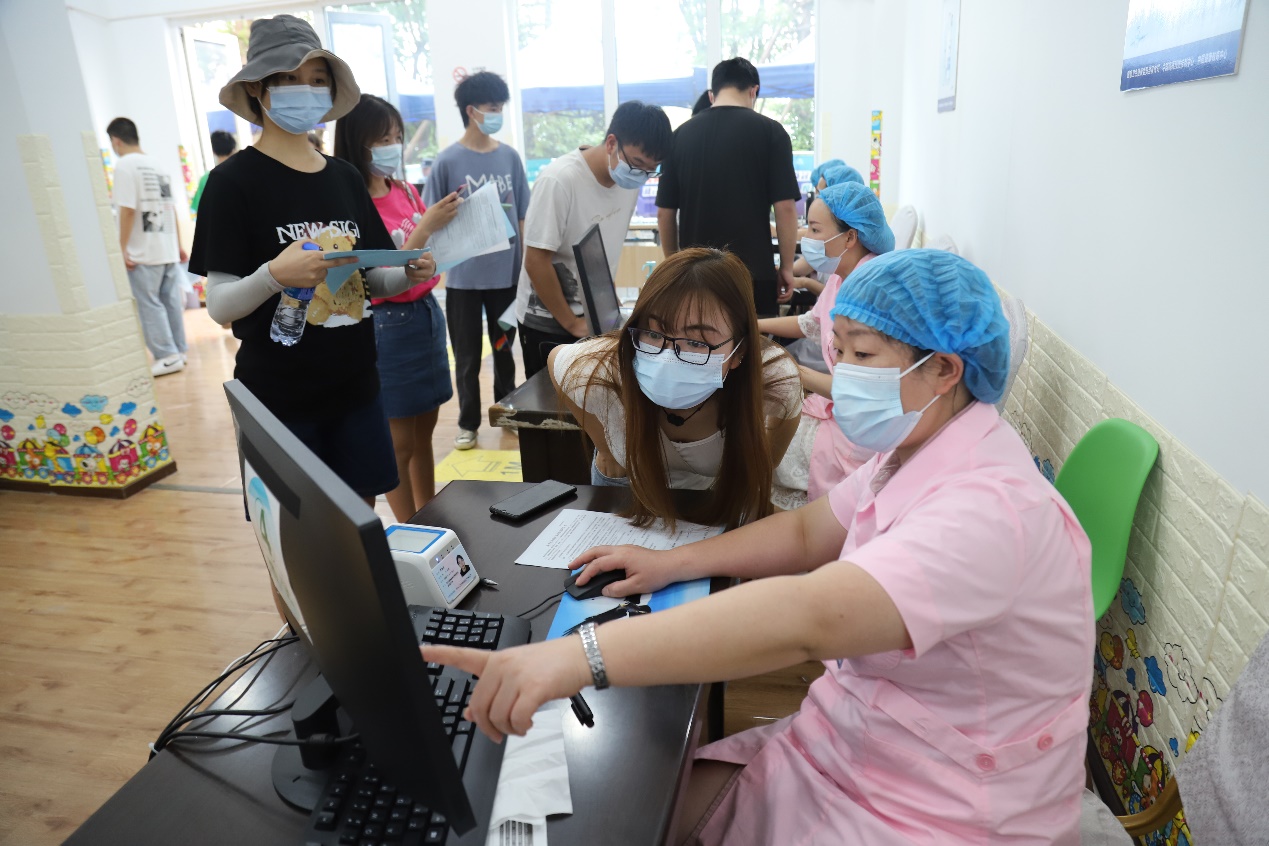 “疫苗接种后,需要经过30分钟的医学观察,确定未出现不良反应后,方可离开接种点。”“接种疫苗后,饮食要清淡,避免食用辛辣刺激性食物,如有不适,及时到医院就诊。”医务人员反复提醒接种师生需注意事项。