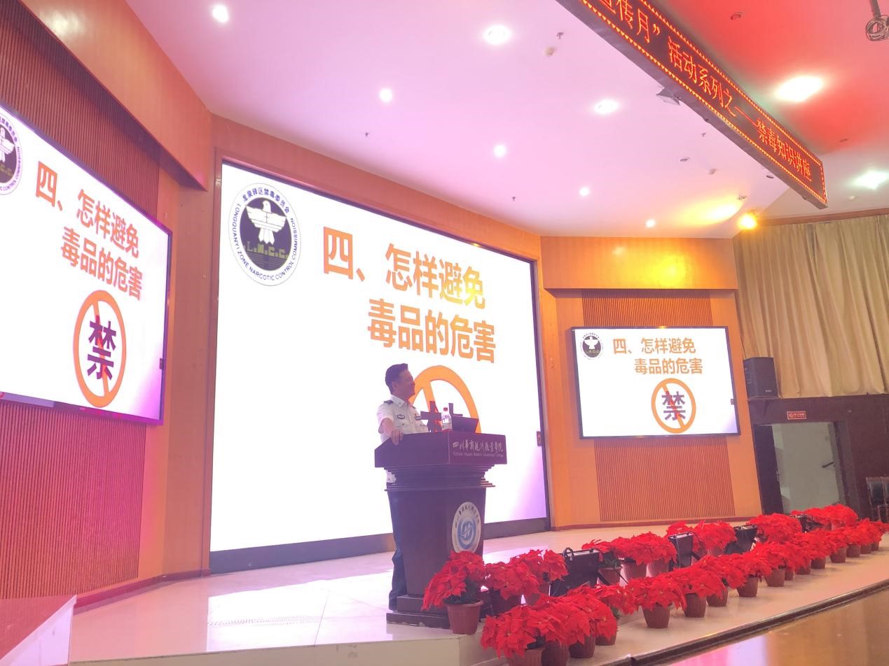 为进一步加强全校禁毒宣传教育力度,努力增强全校师生的拒毒防毒意识、提高拒毒防毒能力,在“6.26国际禁毒日”来临之际,华新学院保卫处特邀龙泉驿区禁毒办张超副主任及禁毒站工作人员,在我院学术报告厅,举行了“6.26国际禁毒日”法制宣传教育知识讲座,二级学院学生代表约200人参加了此次讲座。