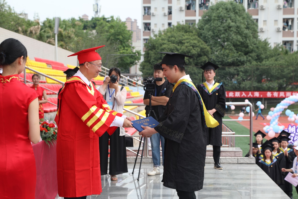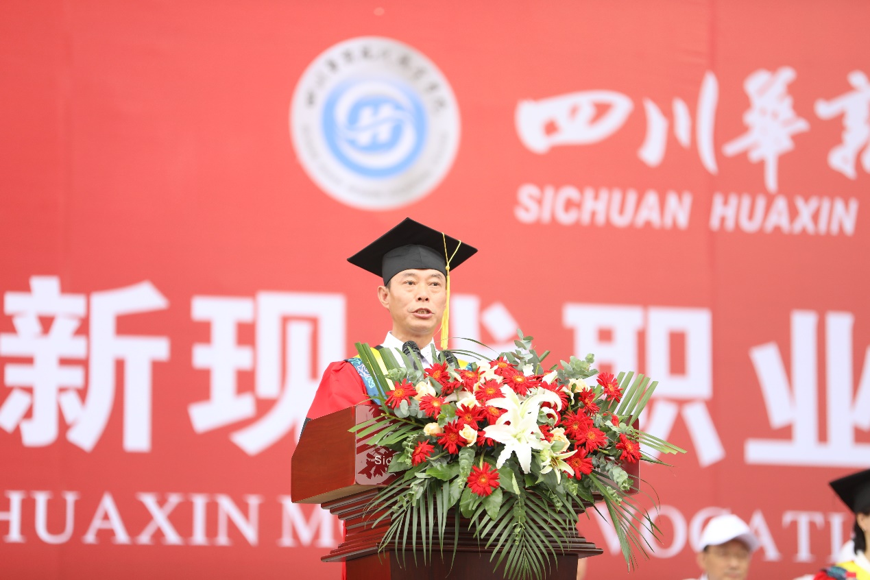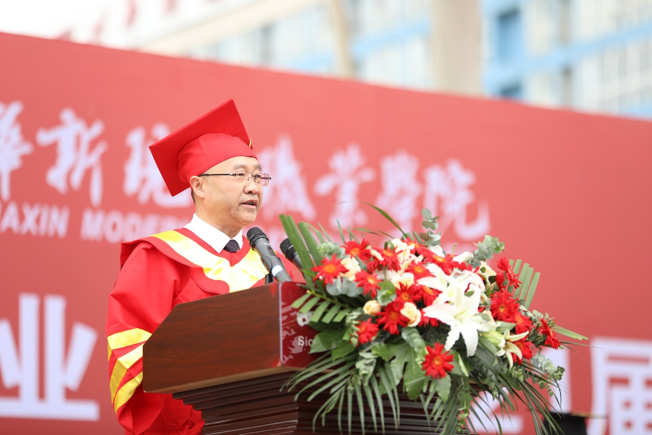 他说,聚是一团火,散是满天星。青春不散场,未来犹可期。今天,你们将破茧而出,羽化成蝶。看着同学们的蝶变,一天天成为更好的自己,深为咱们华新学子喝彩!生活不在别处,脚下即是前方。在校期间,同学们与学院事业共同进步、精彩与共,共同经历了改革开放40周年、“五四”运动100周年和新中国成立70周年的相关庆祝活动,从稚嫩、懵懂到知礼、担当,同学们不断培养和提升自己的气质和内涵,不断塑造自己的核心竞争力。