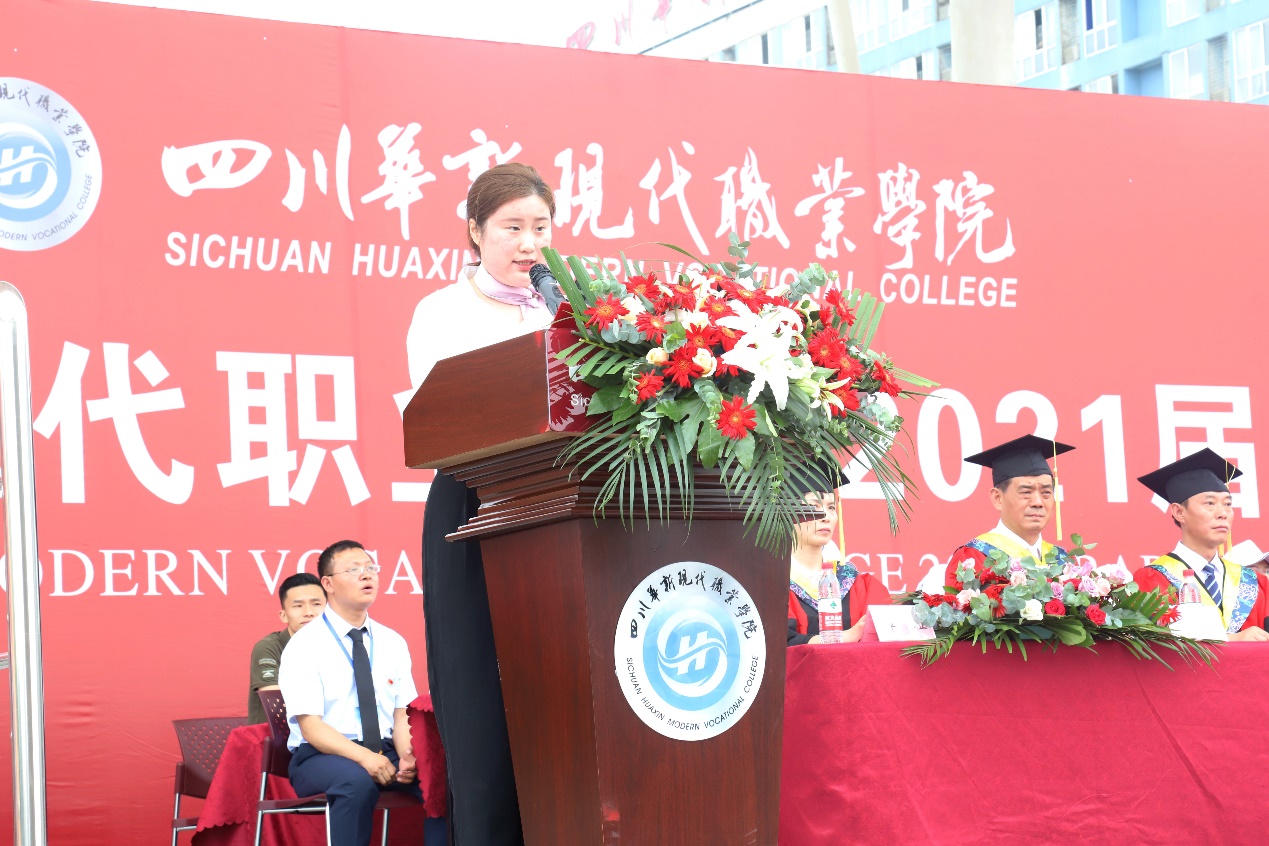 随后,2021届毕业生代表官霖上台发言,她表达了对母校的感谢和不舍,并祝愿所有的毕业生在未来的道路上努力创造更加精彩的人生。