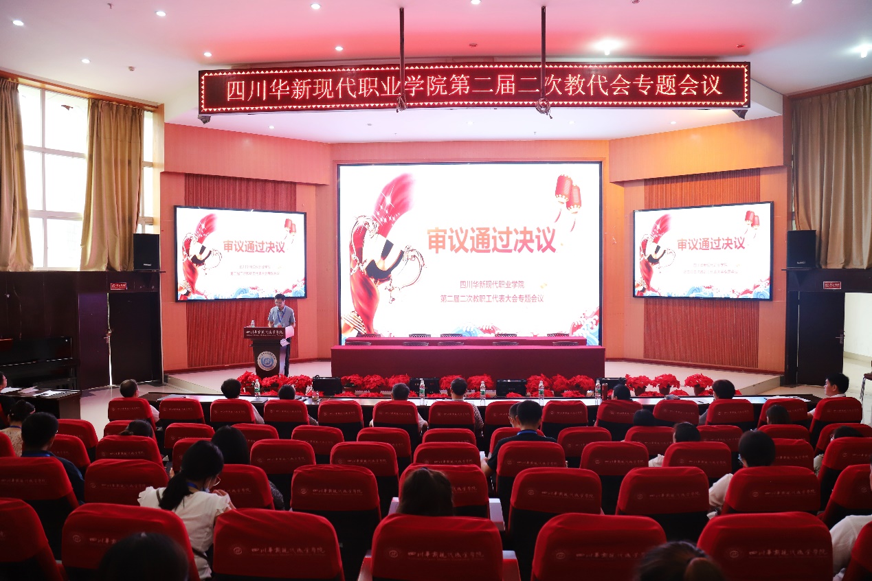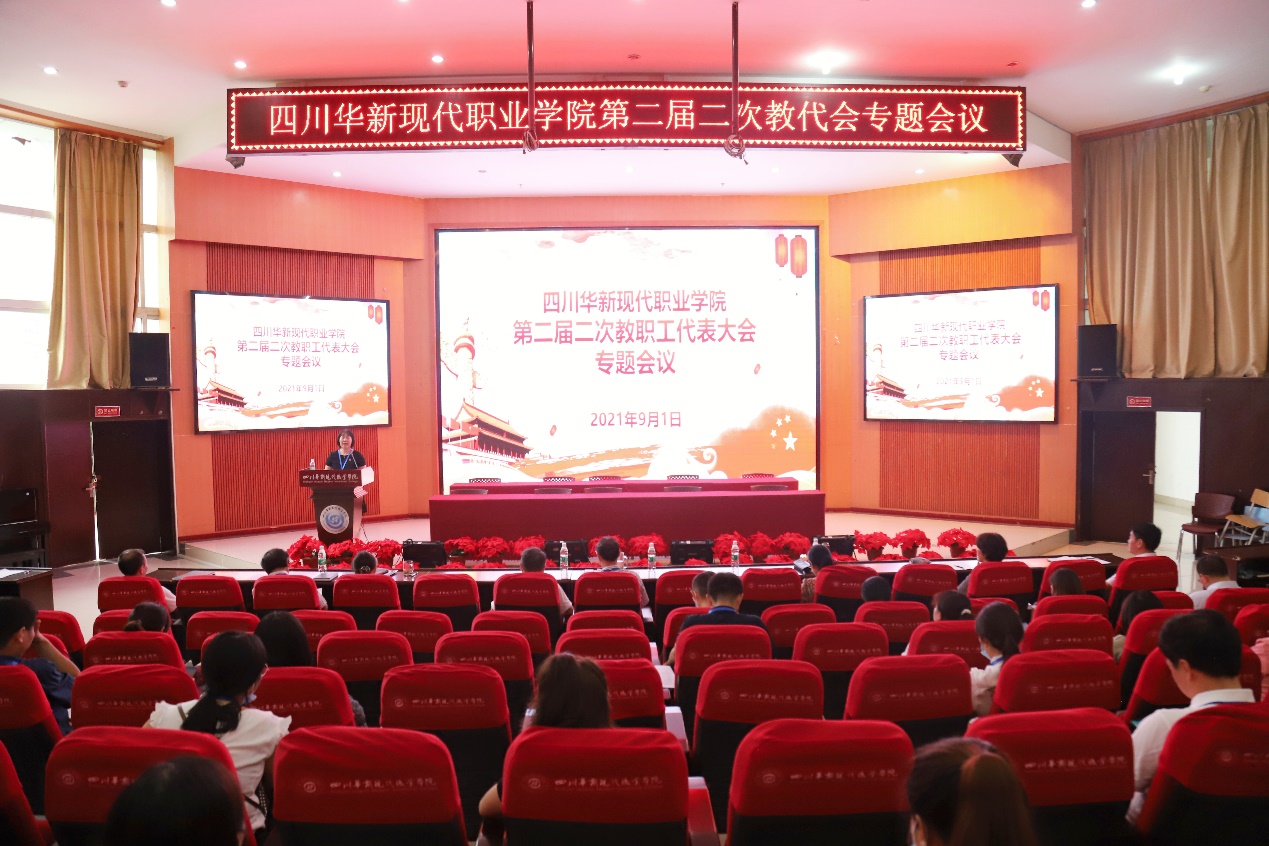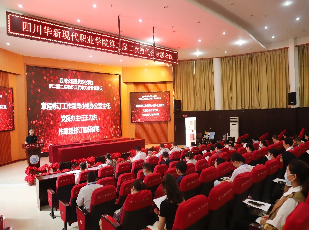 9月1日,四川华新现代职业学院召开第二届第二次教代会专题会议,审议并原则通过《四川华新现代职业学院章程(修订草案)》。学院领导李建川、杨波、解登高、刘斌、涂捷、周勇、谭征、何红出席本次会议,工会主席、纪委书记邓忠主持。教代会正式代表57人参加了会议。