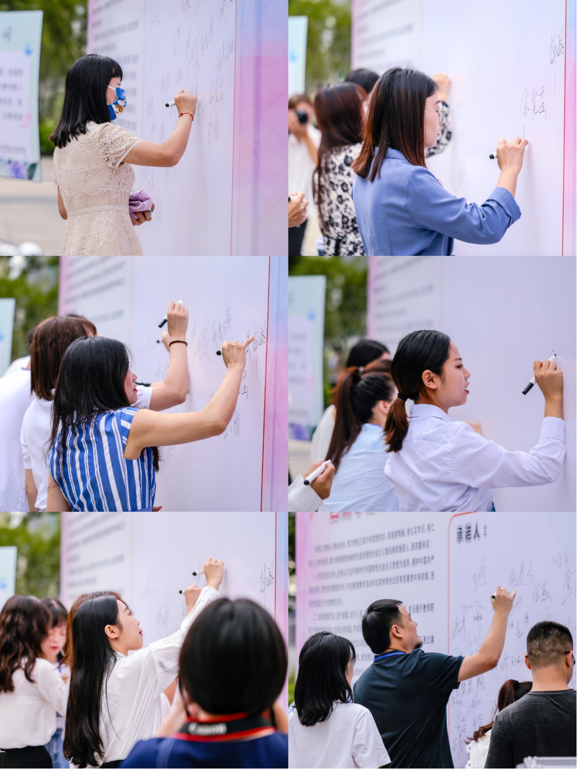 宣誓结束后,正式开启全院教师的师德师风承诺活动,大家仔细阅读师德师风承诺,并在展板上庄重签下了自己的名字。在一笔一划中,承诺不忘立德树人的初心,牢记为党育人、为国育才的使命,坚定学生理想信念,厚植爱国主义情怀,加强品德修养,增长知识见识,努力培养奋斗精神,增强综合素质,培养德智体美劳全面发展的社会主义建设者和接班人,培养一批又一批堪当民族复兴大任的时代新人,做好一名立德树人的新时代高校教师。