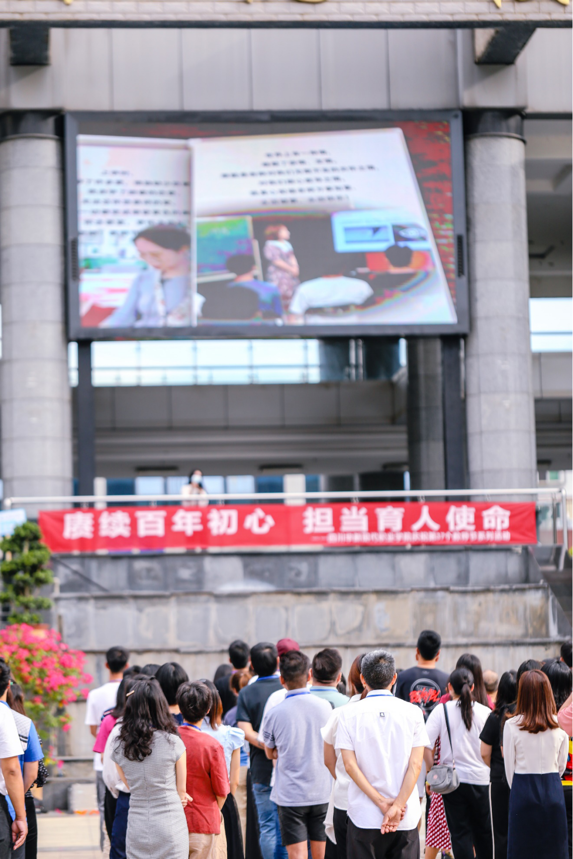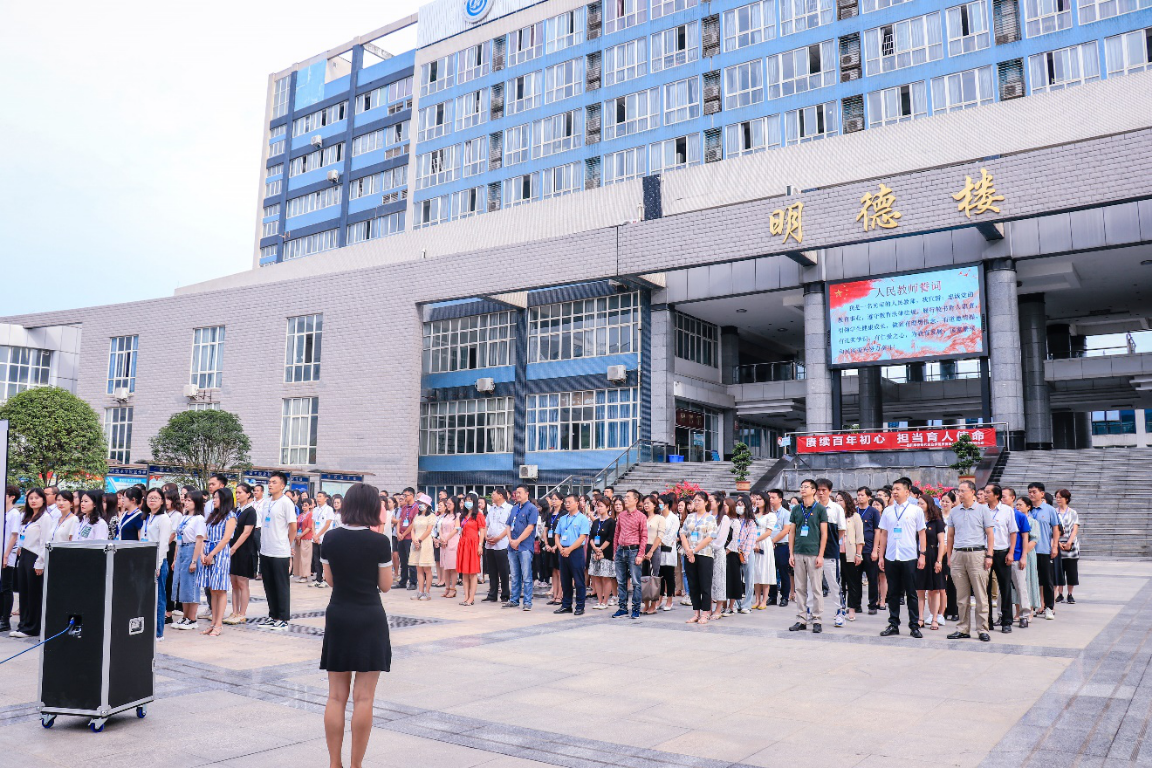 中国共产党成立100周年、实现第二个百年奋斗目标的开局之年、“十四五”的开端之年,为今年的教师节赋予了特殊意义。此次宣誓活动是加强新教师职业理想教育和师德建设的重要载体,通过宣誓,不仅坚定了新教师的职业信念和职业操守,提升了他们教书育人的责任感和使命感,更提醒着每一位新时代教师,要认真学习领会习近平总书记“七一”讲话精神,传承红色基因,继承光荣革命传统,弘扬建党精神,让学生爱党,信党,护党,永远跟党走;鞭策着每一位新时代教师,站在全面建成社会主义现代化强国的第二个百年奋斗目标的起点上,要立足于教育强国的理想,立足于实现教育现代化的需要,立足于建设高质量教育体系的需求,着力提升思想政治素养,积极探索新时代教育教学方法,努力提升教书育人本领,做好“四有”好教师、“四个引路人”,成为党和人民满意的高素质、专业化、创新型教师,以昂扬姿态奋进新时代,以磐石初心坚定育新人。