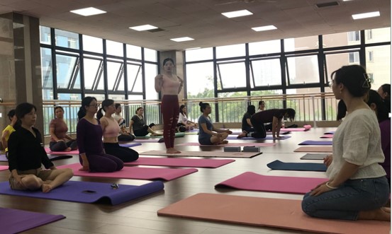 瑜伽课上,授课老师宫博然强调了瑜伽练习的注意事项,介绍了瑜伽的相关知识,逐一指导、纠正大家的坐姿、站姿体式。后期课程中宫老师将运用讲解+示范+辅助引导+体式纠正的方式精进大家的瑜伽体式、使大家深入瑜伽之心。