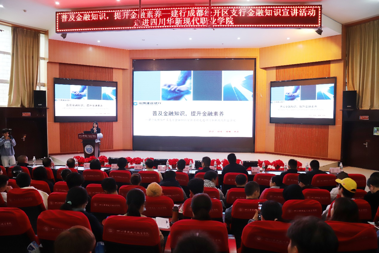 10月20日下午,华新学院举行中国建设银行经开区支行金融知识进校园——四川华新现代职业学院专场宣讲活动,进一步做好金融知识宣传教育工作,提升学院师生金融素养,提高对金融风险的识别能力和防范意识。华新学院党委副书记、院长杨波,副院长刘斌、周勇,纪委书记、工会主席邓忠,中国建设银行成都经济技术支行行长邱斌、副行长曾剑,龙泉驿区公安局西河派出所所长林川出席活动。