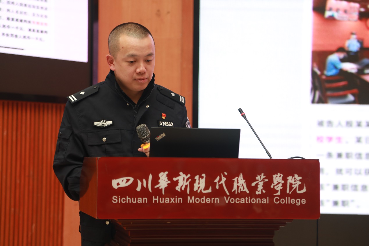 活动邀请成都市龙泉驿区公安分局反诈中心一级警长罗长弓、人民银行双流支行国库会计科科长李德富、中国建设银行风险管理部反洗钱业务牵头人岳璇、中国建设银行风险管理部征信业务牵头人杨莉瑶分别就识别网络犯罪、反电信网络诈骗、反洗钱和征信常识等方面的知识进行宣讲。他们通过实际案例,深入浅出地向广大师生讲解各类防骗知识。同时提醒师生提高金融知识综合素质和金融风险防范意识,加强个人信息保护,树立正确的消费观、理财观,有效维护好自身合法权益。