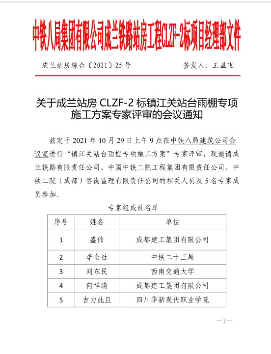 10月29日,华新学院建交学院副教授吉力此且(国家注册监理工程师、国家注册安全工程师)应中铁八局集团有限公司邀请,作为专家组成员参加了由中铁八局集团有限公司组织的《成兰铁路站房工程CLZF-2标镇江关站台雨棚专项施工方案》评审。参加评审的单位主要有成兰铁路有限责任公司、中国中铁二院工程集团有限责任公司、中铁二院(成都)咨询监理有限责任公司等单位,以及来自西南交通大学、中铁二十三局集团、成都建工集团、四川华新现代职业学院等5位专家。