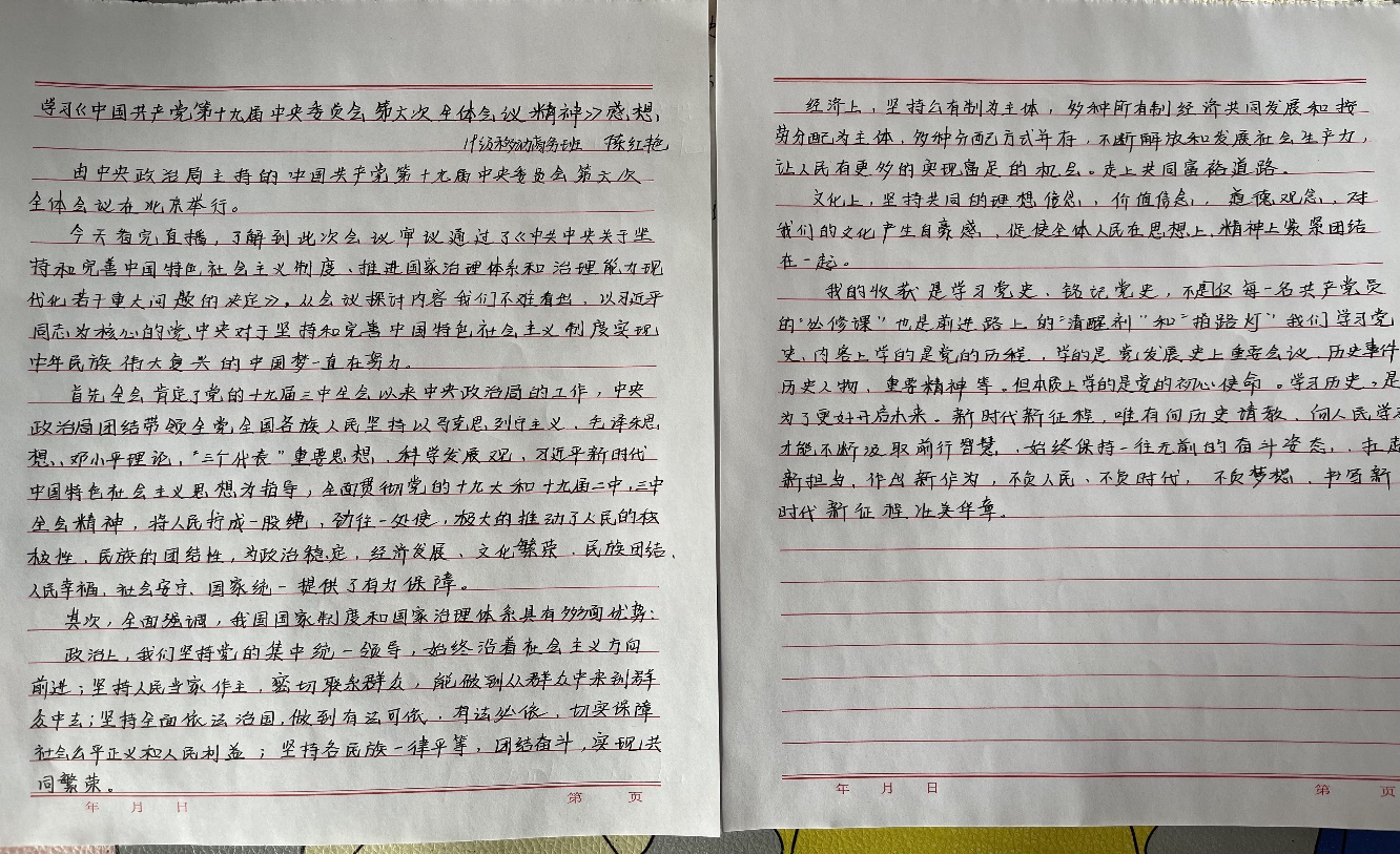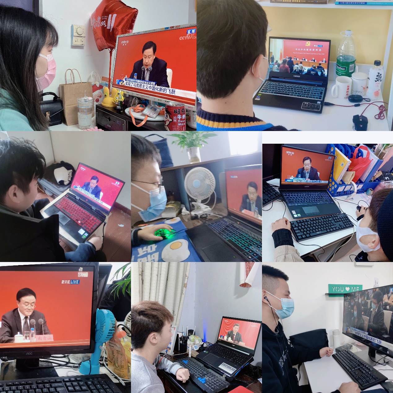 全会胜利闭幕后,全体党员认真学习贯彻全会精神,各支部通过“线上+线下”的方式,将集中学习和自学相结合,通过手机、电脑、电视等媒介组织研学全会公报,收看党的十九届六中全会新闻发布会,撰写学习感悟、交流心得,深化对全会精神的思考领悟,努力用全会精神统一思想、凝聚共识,用全会成果鼓舞干劲、坚定信心,用全会部署指导工作、推动落实。