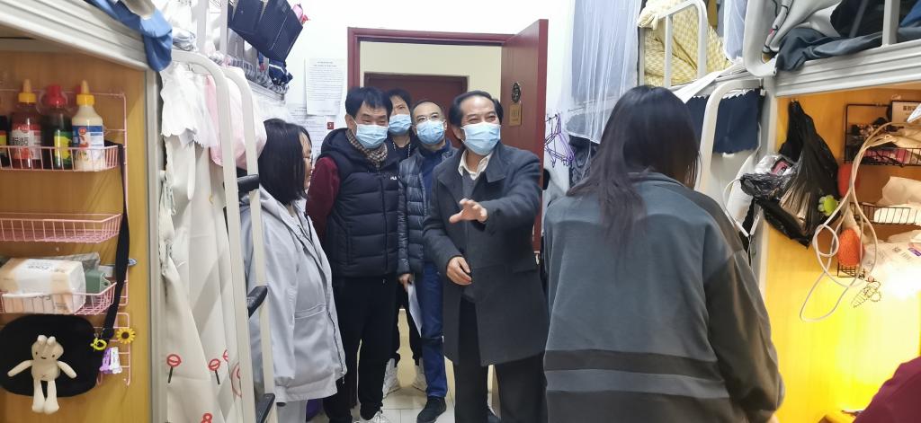 解登高、周勇带队检查组走访学生寝室,主要就寝室走廊通畅情况、学生用电安全和寝室卫生等方面进行重点检查。同时关心学生的学习、生活和用电用水情况,对学生的寝室安全、卫生习惯提出了具体明确要求,同学们纷纷表示将会严格遵守学校相关规定,做好寝室卫生、杜绝寝室消防安全隐患。