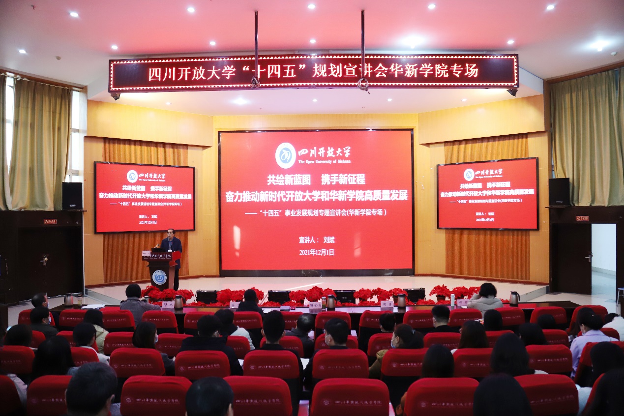 为学习贯彻和宣传四川开放大学“十四五”事业发展规划,让全院教职工深刻领悟规划精神和要求,12月1日上午,华新学院举行了“十四五”事业发展规划专题宣讲会,副院长刘斌进行华新学院专场宣讲,副院长涂捷,纪委书记、工会主席邓忠,副院长谭征参加。学院全体教职工聆听了此次宣讲。宣讲会由党委副书记解登高主持。