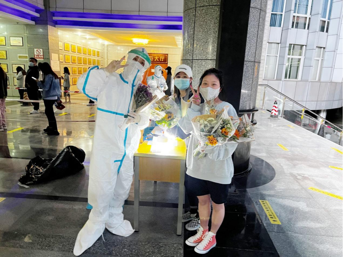 教职员工细致耐心的工作让学生切实感受到了学校给予他们的关心和温暖,应用技术学院封控学生委托教师为抗疫一线的院领导、辅导员、食堂工作人员、宿舍管理人员、志愿者等发来感谢信,用真诚的言语表达了对教职员工辛勤付出的感谢,教育学院学生为辛勤服务的“大白”送上美丽的花束,每一束鲜花都写上了她们的祝福和感恩。