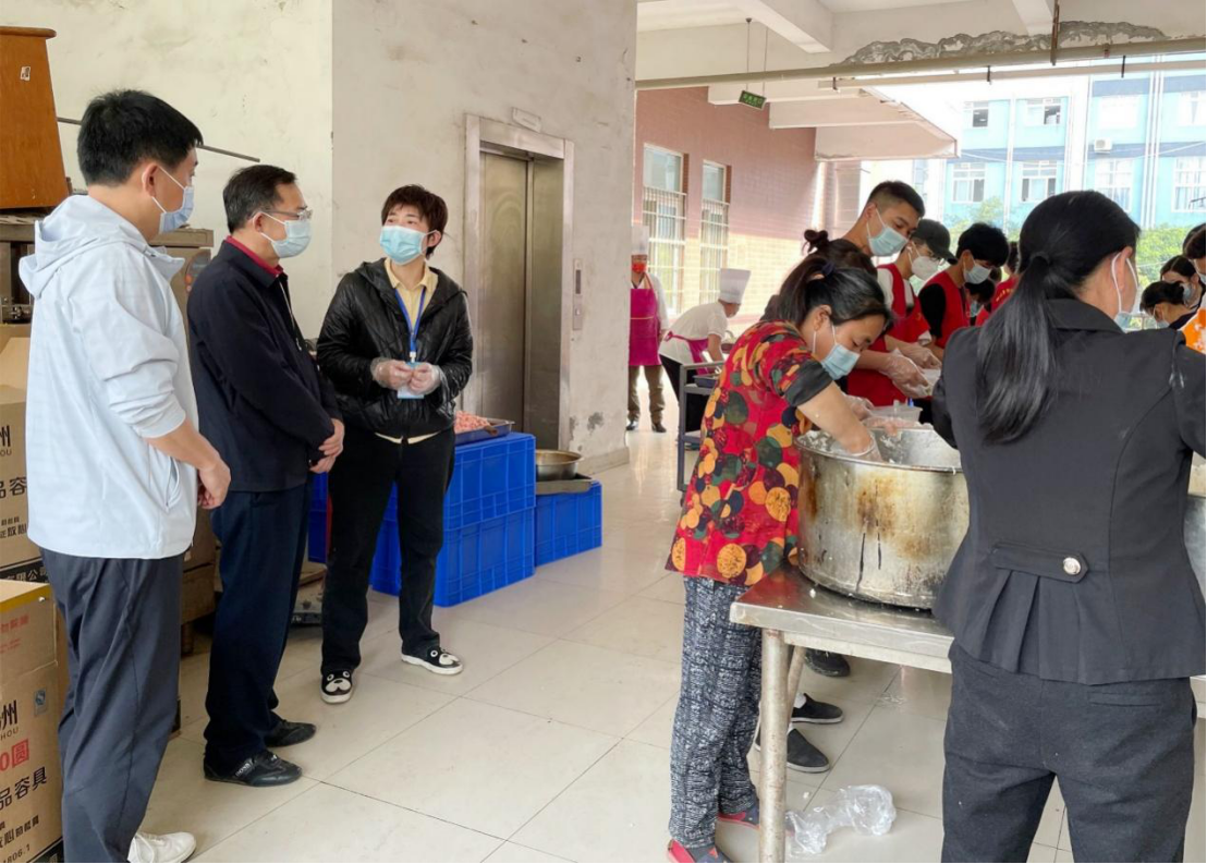 院领导及时召开疫情防控工作会,与各院处负责人一起日夜坚守,坐镇校园防疫最前方,守好防控责任田。作为学院疫情防控的中枢核心,党委书记陈建生带领领导班子成员留校坚守一线,负责统一领导、指挥全校疫情防控工作,全面统筹,分工负责,盯紧防控各环节,多次带队了解校园生活物资保障情况、学生健康状况、线上教学实施情况以及防护措施落实情况,不断强调并压实责任,在严防死守下确保第一时间将疫情隔绝在外。