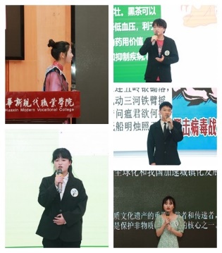 比赛在“Chinese Tea Culture(中国茶文化)”的娓娓述说中拉开帷幕。选手们在指导老师精心指导下,充分准备,自信满满,或歌或咏,或诵吟或演说,绘声绘色地以自己的方式讲中国故事、秀英语风采。有展示中华传统文化的英语配音《功夫熊猫》片段、英文版歌曲《青花瓷》、英语演讲《中国茶文化》《蜀绣文化》;有表现抗疫精神的英语朗诵《七律二首送瘟神》和演讲《这一刻,我们》,英文歌曲《我们是战士》;有热情讴歌祖国的英文朗诵《我亲爱的祖国》和英文配音《觉醒年代和建党伟业混剪》。选手们展现了良好的精神风貌和英语语言驾驭能力,提升了同学们的文化自信和英语语言学习兴趣。