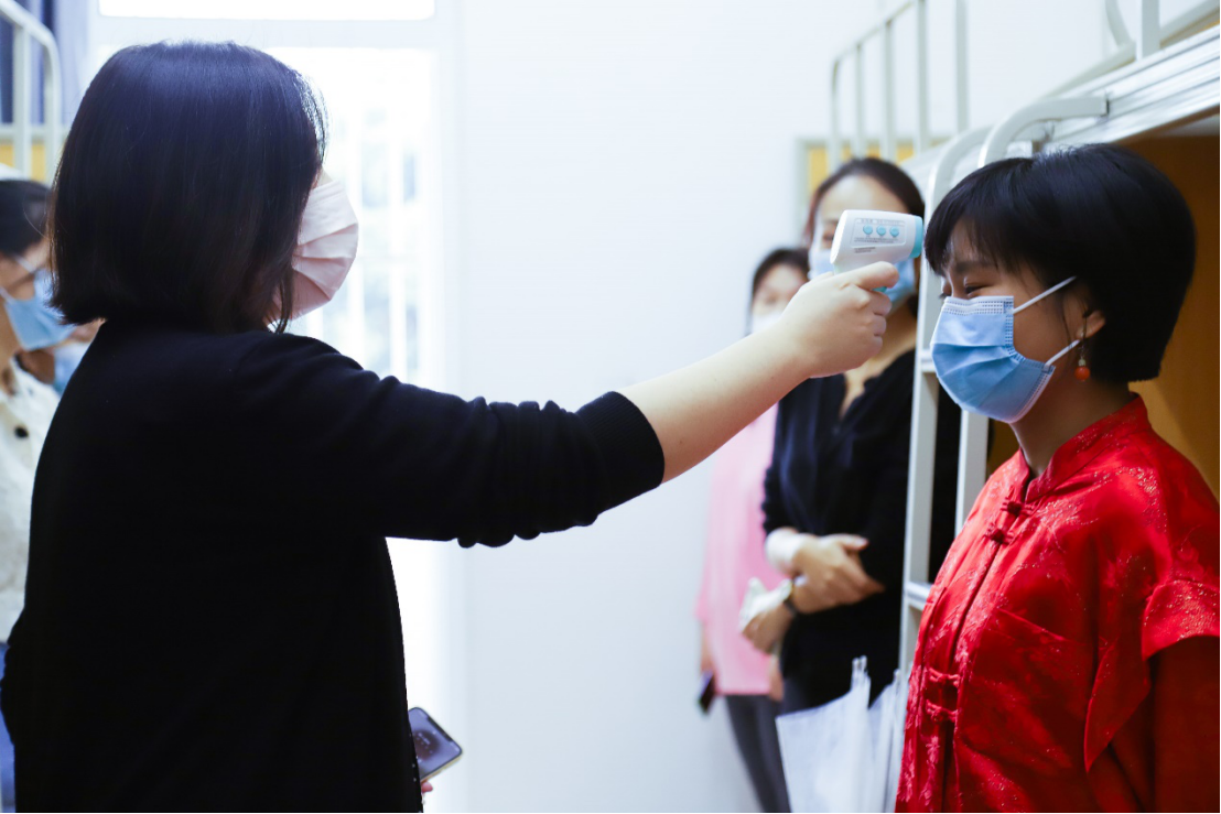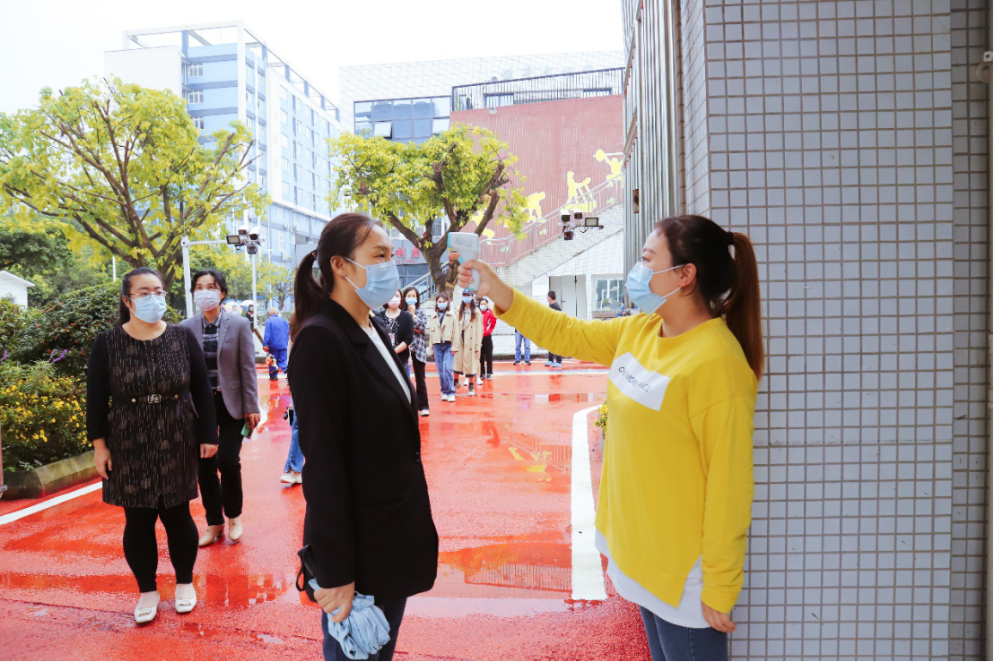 在各个防疫演练场景中,从学生进校门到往返教学区、住宿区和食堂,发现学生不适或体温异常等突发状况,开展应急处置,包括登记留观、体温复测、送医就诊、上报辖区疾控部门、紧急通知、校内消杀、相关场所隔离或封锁等各项应急措施。