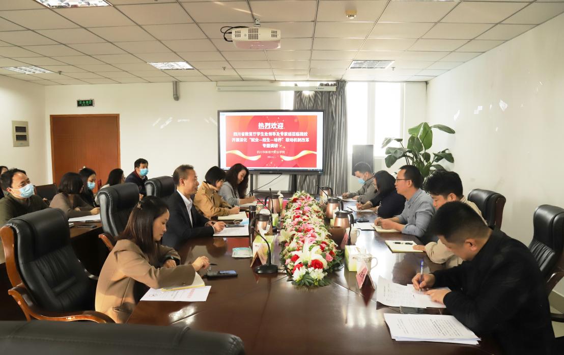 按照省委教育工委、教育厅印发的《深化“就业—招生—培养”联动机制改革调研方案》部署,11月2日,四川省教育厅高校学生处处长李浩,“就业-招生-培养”联动机制改革专家组成员、西南石油大学招就处副处长肖友平,西华大学教务处处长蒋珍菊、四川省教育厅就业指导中心干部舒爰鑫、四川省教育厅学生处干部范生根一行莅临我校,针对“就业—招生—培养”联动机制改革开展专题调研。华新学院党委副书记、院长刘斌,副院长谭征、招就处处长郑晓霞、教务处处长翁艳、各二级学院党支部书记、2022届毕业班辅导员参加了此次调研。