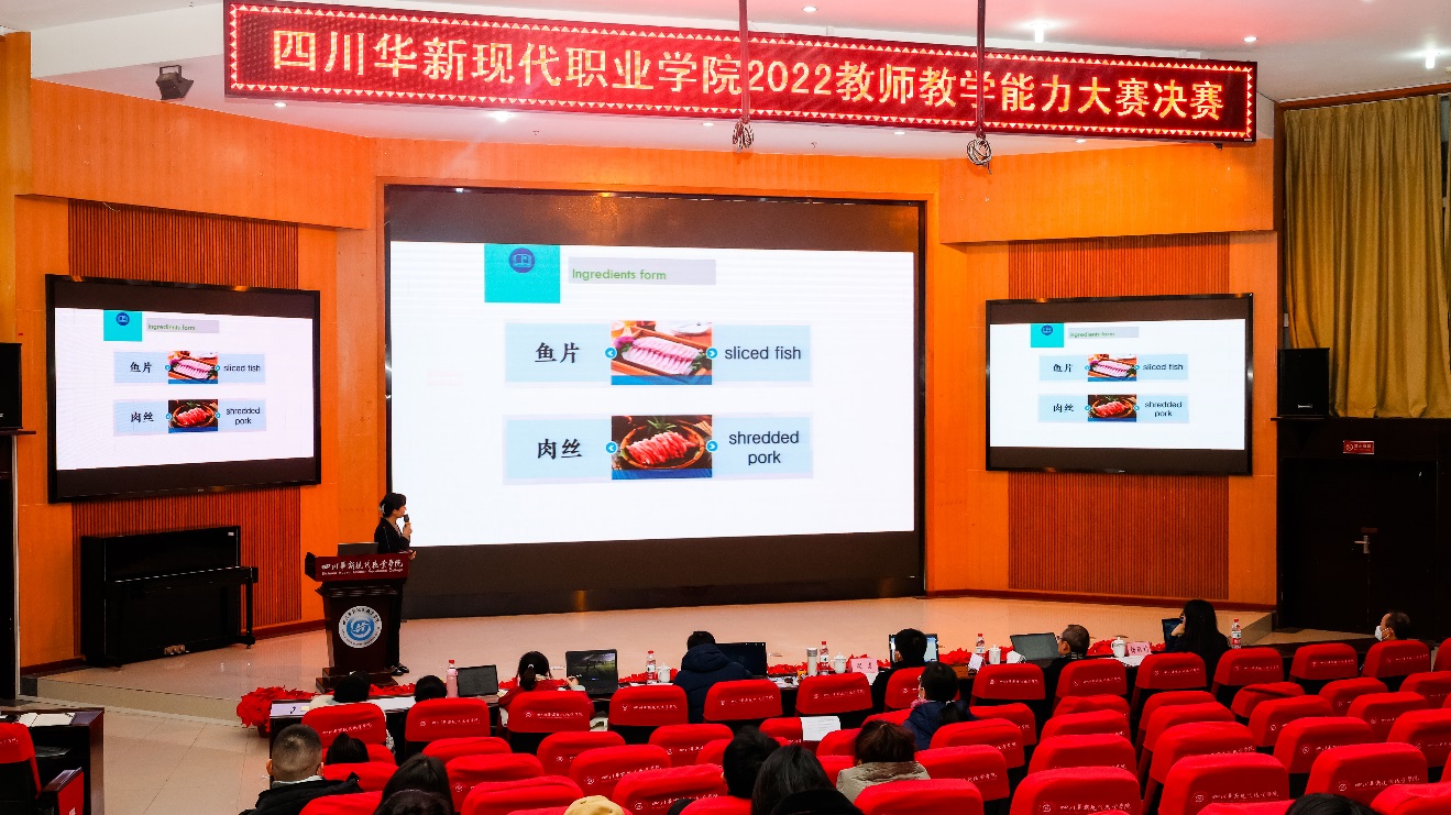 1月3日,四川华新现代职业学院2022年教师教学能力大赛决赛在学术报告厅隆重举行,学院副院长周勇、四川开放大学农林卫生学院院长杨志超、四川开放大学教务处副处长孙伟、成都工贸职业技术学院杨丽均老师、四川文化产业职业学院何雯娟老师担任决赛评委,学院领导刘斌、谭征及专兼职教师观摩了比赛。