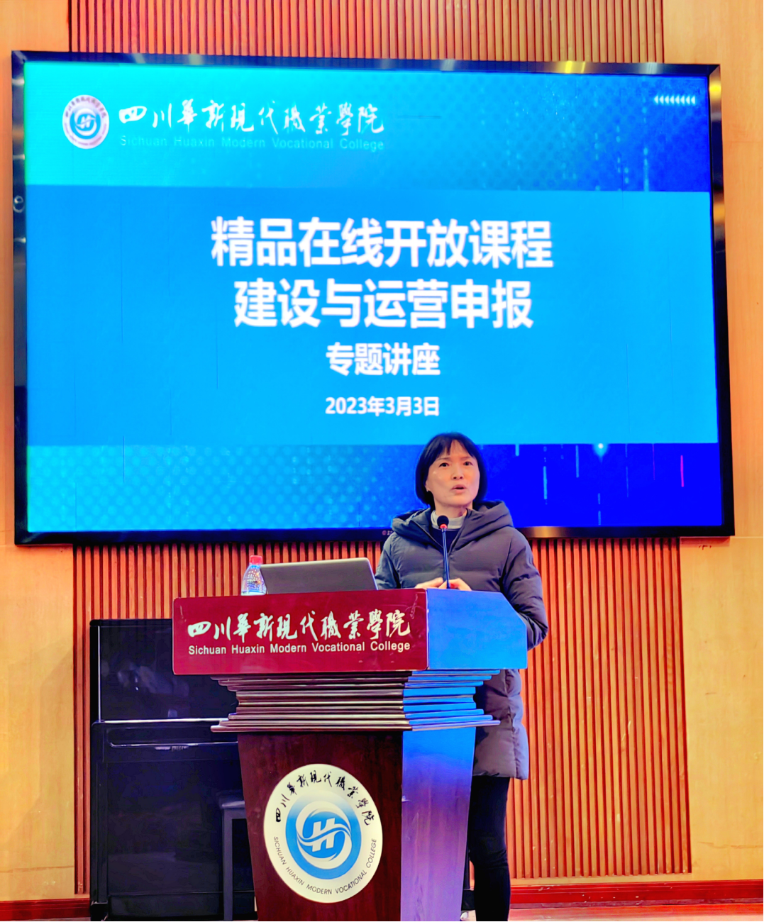 为贯彻落实学院“十四五”规划建设要求,进一步推进在线开放精品课程建设,促进优质教学资源共建共享,推动学校教育教学高质量发展,3月3日上午,华新学院邀请超星集团四川分公司高级课程顾问、学银在线平台四川地区负责人陈晨在学术报告厅举行了一场题为“精品在线开放课程建设与运营申报”的专题讲座,学院副院长谭征出席并讲话。学院全体专兼职教师参加。