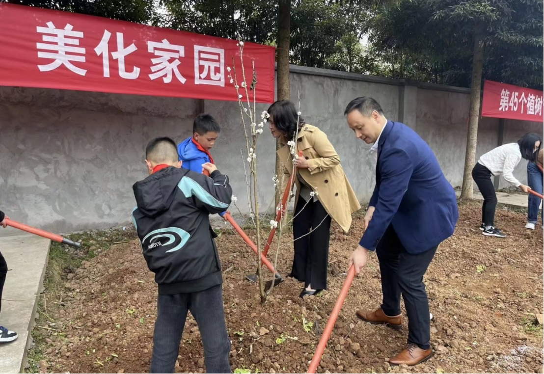 最后两校师生来到我院与马湖小学共建劳动实践基地“信马园”,进行“小手拉大手,小树变大树”植树活动。孩子们与领导老师们一起扶着一棵棵树苗,共同铲土、填土,栽下我院捐赠的象征着友谊和希望的树苗。
