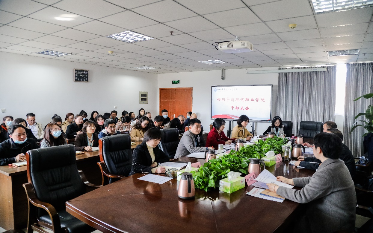 四川开放大学党委组织部长赵珩君,华新学院领导班子成员、全体中层干部参加会议。