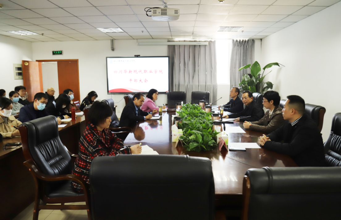 3月16日,华新学院召开干部大会,宣布四川开放大学党委关于学院领导调整的决定。四川开放大学党委副书记、华新学院党委书记陈建生出席会议并讲话,四川开放大学党委组织部部长、人事处处长赵珩君出席,学院党委副书记、院长刘斌主持会议。