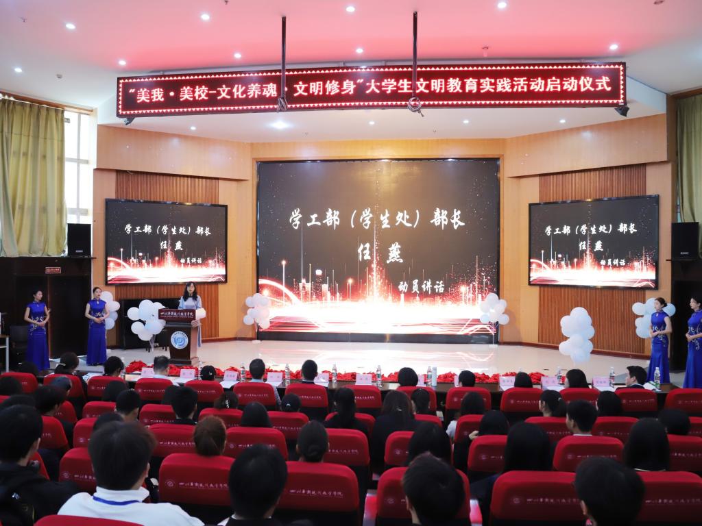 4月26日,华新学院启动“美我·美校—文化养魂·文明修身”大学生文明教育实践活动,深入学习贯彻党的二十大精神,以美养德、以美启智、以美健体,打造和谐校园,创新学院德育特色之路,树立“德才兼备、先德后才”的教育教学理念,教育引导全院学生持续提升文明素质,做文明礼仪的先锋,着力培养担当民族复兴大任的时代新人。学院党委副书记李瑜出席活动并致辞。宣传部、学工部(学生处)、基础教育部负责人以及各二级学院书记、副书记、辅导员和参加。