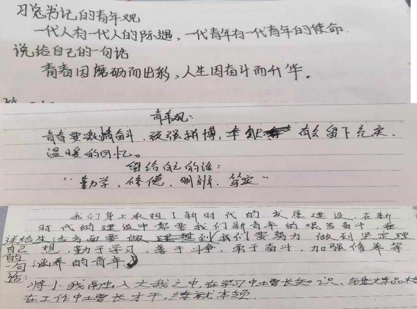 课堂结束之际,吕老师引领华新学子们在“五四”青年节这个特殊的节日里最想给自己说的一句说。学生积极发达了自己的观点,坚定了自身的理想信念。