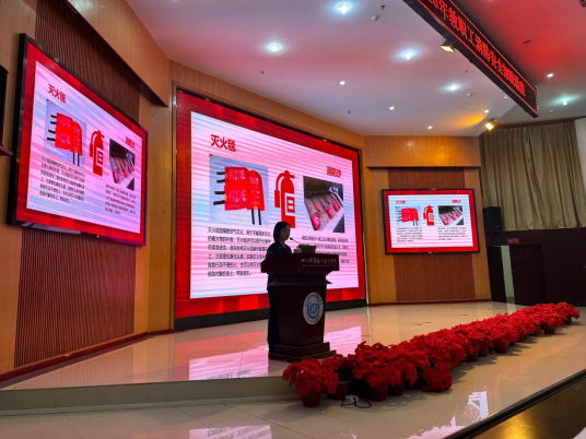 此次培训特邀龙泉驿区消防大队参谋长何雨潼主讲。培训中,何雨潼以事故分析、现场说法的方式使全体教职工深刻认识到“隐患险于明火、防范胜于救灾”的重要性。随后针对学院消防安全的实际情况,结合在工作和生活中用电、用气、用火的知识,详细讲解了发生火灾后的自防、自救、逃生技能,并按种类、功能、用途介绍了不同的灭火器。何雨潼语言生动,声情并茂,极富感染力,联系实践,贴近生活,引人入胜,收到了很好的教育效果。
