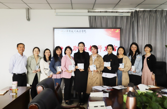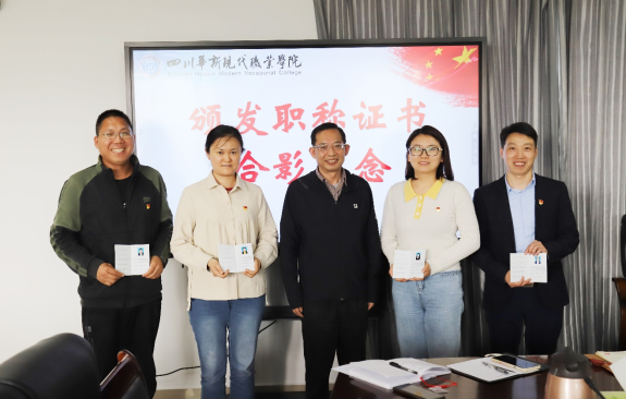 会上,人事处负责人宣读了职称聘任文件。陈建生为晋升副高职称教师颁发了职称证书并合影留念。