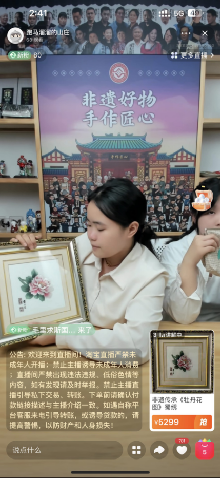 刘毅表示,此次电商直播活动是学院对非遗蜀绣传承的一项重要举措。通过直播的形式,学生们不仅能够展示自己所学的蜀绣技艺,还能与观众进行实时互动,提升沟通与销售能力。这种创新的教学方法将传统手工艺与现代电商相结合,为学生们提供了更多的就业和创业机会。