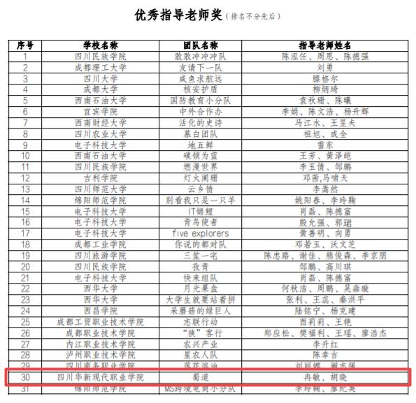 图四 优秀指导老师获奖名单