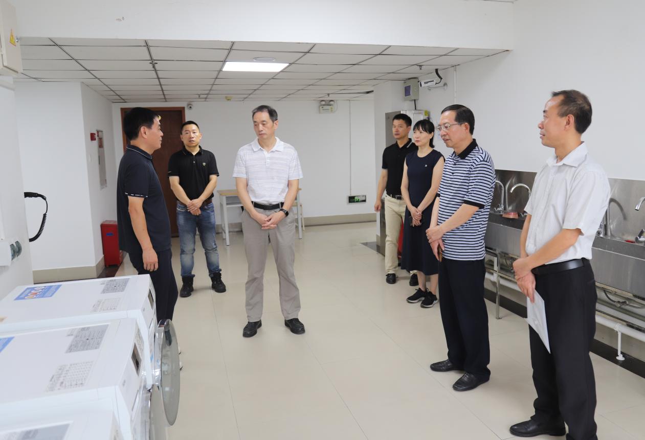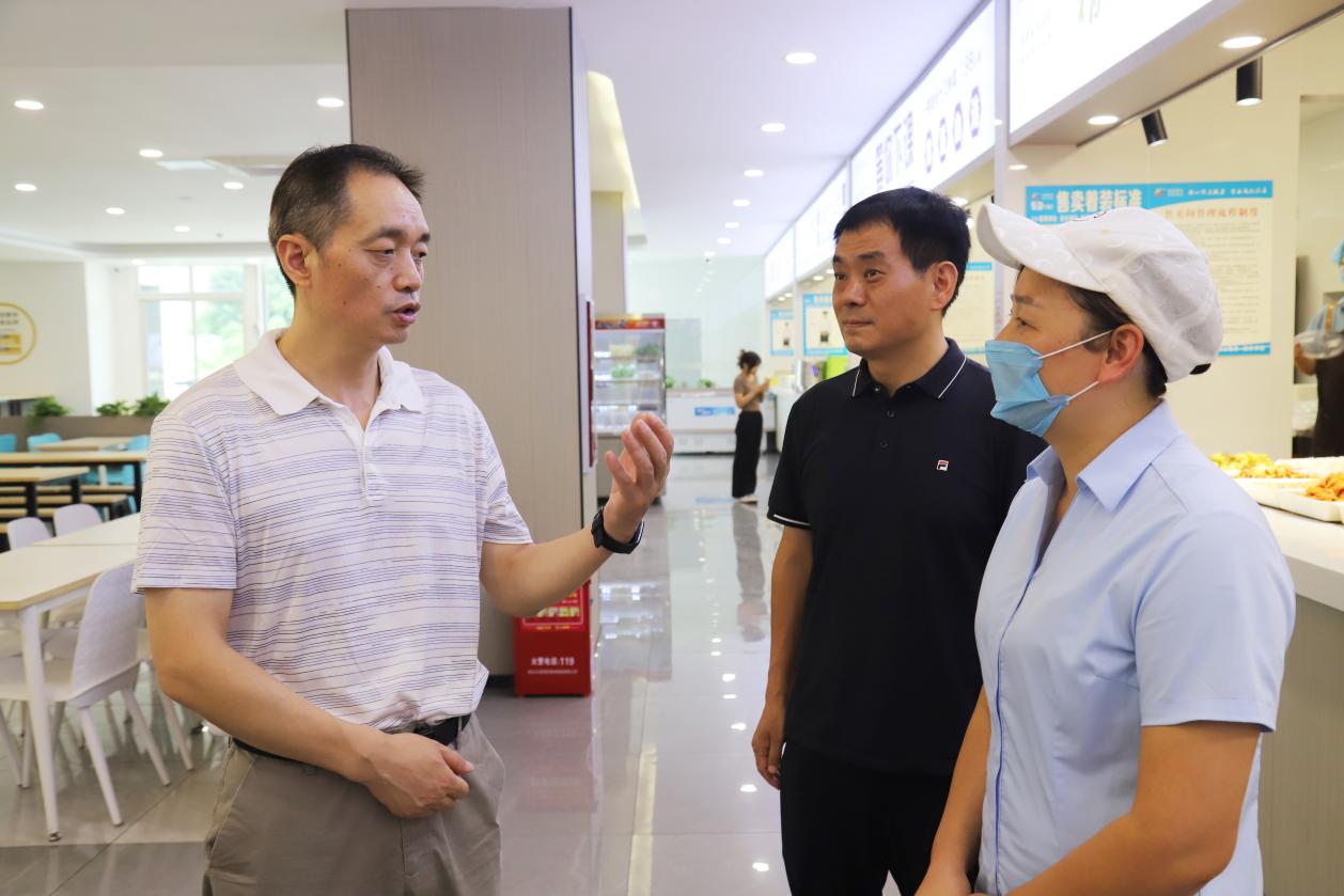 在新生宿舍和教师办公室,杨俊辉仔细查看了宿舍区、教学区的设施和环境,认真听取了相关负责人对宿舍维护和管理情况的汇报。杨俊辉指出,要进一步加强宿舍、教学设施的维护和管理,相关职能部门要加快工作进度,全面改善宿舍条件,美化宿舍环境,为广大学生提供安全、整洁、温馨的居住和学习环境,为教师提供舒适的办公环境,让他们真切感受到来自学院的关怀和温暖。在学院食堂,杨俊辉询问了餐饮价格和学生就餐情况,随后,他深入后厨、储物间等地,叮嘱工作人员要做好食品安全、水电气安全等工作,保证师生的餐饮服务质量。在图书馆、“一站式”社区,杨俊辉实地查看了办公环境,并亲切看望慰问了一线教职工,勉励师生员工克服困难,刻苦钻研,关爱学生,争当典范,为学生成人成才做出更大努力。